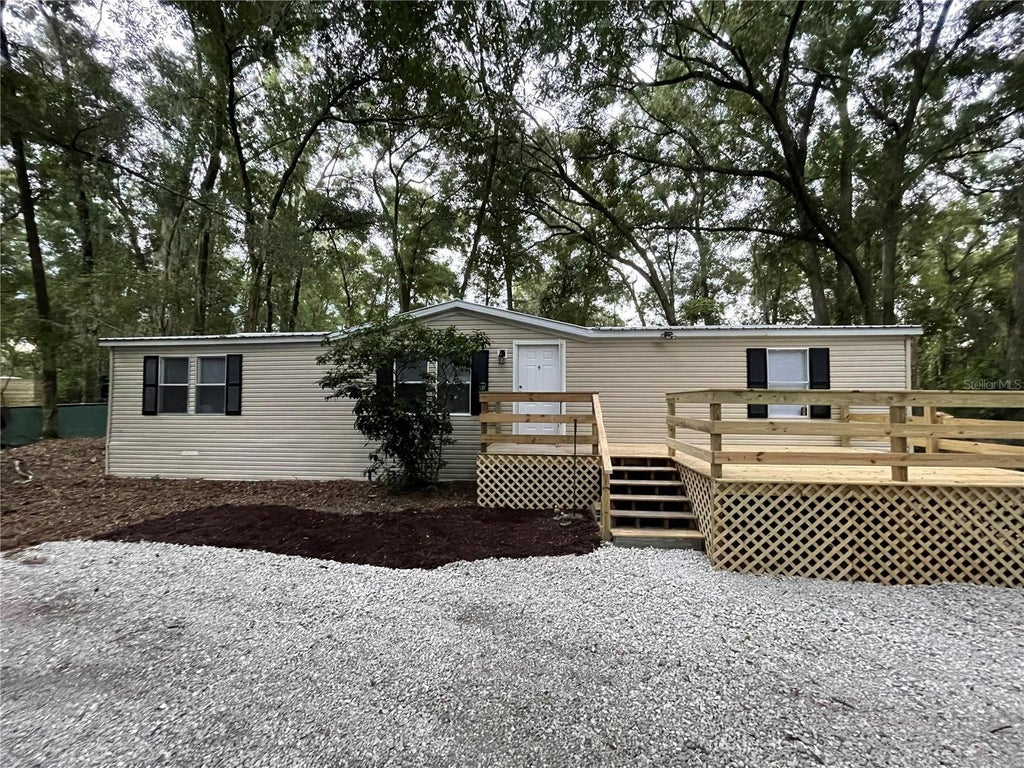 Under contract-accepting backup offers. Updated bargain with a $5,000 BUYER INCENTIVE! Take a look at this renovated 4 bedroom, 2 bath 1512sf manufactured home in Alachua. Be the first to enjoy the brand new kitchen cabinets, island, brand new stainless steel refrigerator, range, microwave and dishwasher. Kitchen island with butcher block counter top and sitting space for some stools. Flowing throughout the home are new luxury vinyl plank flooring and tile flooring in the bathroom. Both bathrooms have new sinks, vanities and showers. Including a new soaking tub in the primary bath for some relaxation. Primary bedroom and two guest bedrooms have walk-in closets. Inside laundry room with barn door and walk-in pantry. New LED light fixtures and fans throughout. For added peace of mind there is a metal roof, recent HVAC and new water heater. $5,000 buyer closing cost incentive for an acceptable offer by 10/31/2025. Principal and interest payments as low as $1,330.37 per month! Some 100% financing ($0 downpayment) options available for qualified buyers.