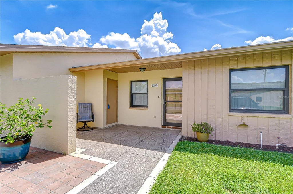Welcome to Driftwood, a charming and maintenance-free 2-bedroom, 2-bath condo ideally located just minutes from shopping, dining, hospitals, medical offices, a movie theater, and more! Step inside to find a thoughtfully designed split-floor plan that provides added privacy between bedrooms. The kitchen, situated just off the entryway, offers generous cabinet space and a convenient pass-through to the open living and dining area—perfect for entertaining. Enjoy the airy feel of the spacious living room which flows to the sliding doors that open to a cozy Florida/patio room. This versatile space also includes a laundry closet. Retreat to the master suite featuring a walk-in closet and an en-suite bath with a walk-in shower. The second bedroom and bathroom are located on the opposite side of the condo, ideal for guests. Note the crown molding with updated windows and blinds. The flooring was upgraded in 3/2024 with vinyl plank flooring, new AC with heat pump 4/2021, roof replaced 2020, new washer and dryer 1/2025 and more. Driftwood is a gated community, and the monthly fees covers exterior maintenance, water, sewer, garbage, lawn care, and access to community amenities including a community pool, clubhouse, and shuffleboard courts. Call today to schedule your tour.