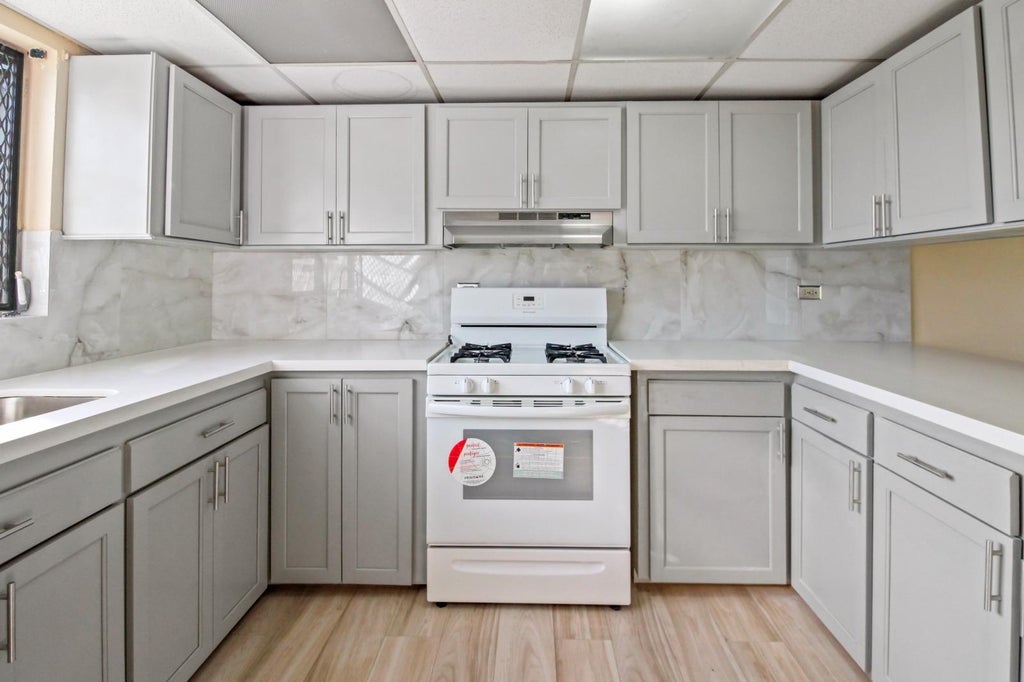 Ultimate Island Living! Fully renovated home in tranquil Stapledon Gardens, featuring a stunning 16+ ft. high ceiling with beautiful exposed rafters and efficient split A/C throughout for comfort. Interior Highlights: 2 spacious bedrooms + a versatile renovated attic space perfect for a home office or 3rd bed. Brand New Kitchen: Sleek gray shaker cabinets, pristine white quartz/solid surface countertops, and a chic marble-look backsplash. Luxurious, easy-to-maintain wood-plank porcelain floors flow seamlessly through the home. Location & Exterior Perks: Ultra-Central & Convenient: Located minutes (under 5-min drive) to the beautiful white sands of Saunders Beach (approx. 1.8 miles) & the vibrant Cable Beach. Easy highway access makes commuting to resorts, fitness centers, and major shopping simple. Lush Yard: Enjoy your large private yard with mature, yielding fruit trees (soursop, banana, peach, scarlet plum, and more!). Experience convenient, modern island living—schedule your viewing today!