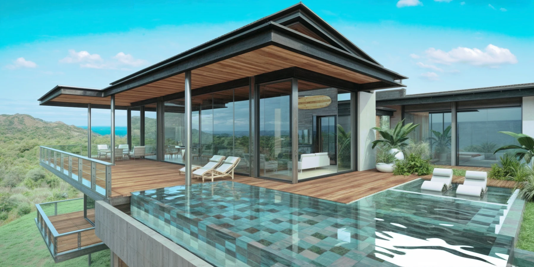 Outdoor Luxury: Wide terraces and an infinity-edge pool, seamlessly blending the home with its tropical surroundings.