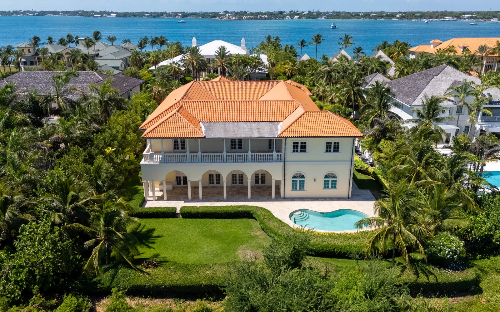 Outside, there is a pool, a large patio for outdoor entertaining, and views of the Ocean Club Golf Course.