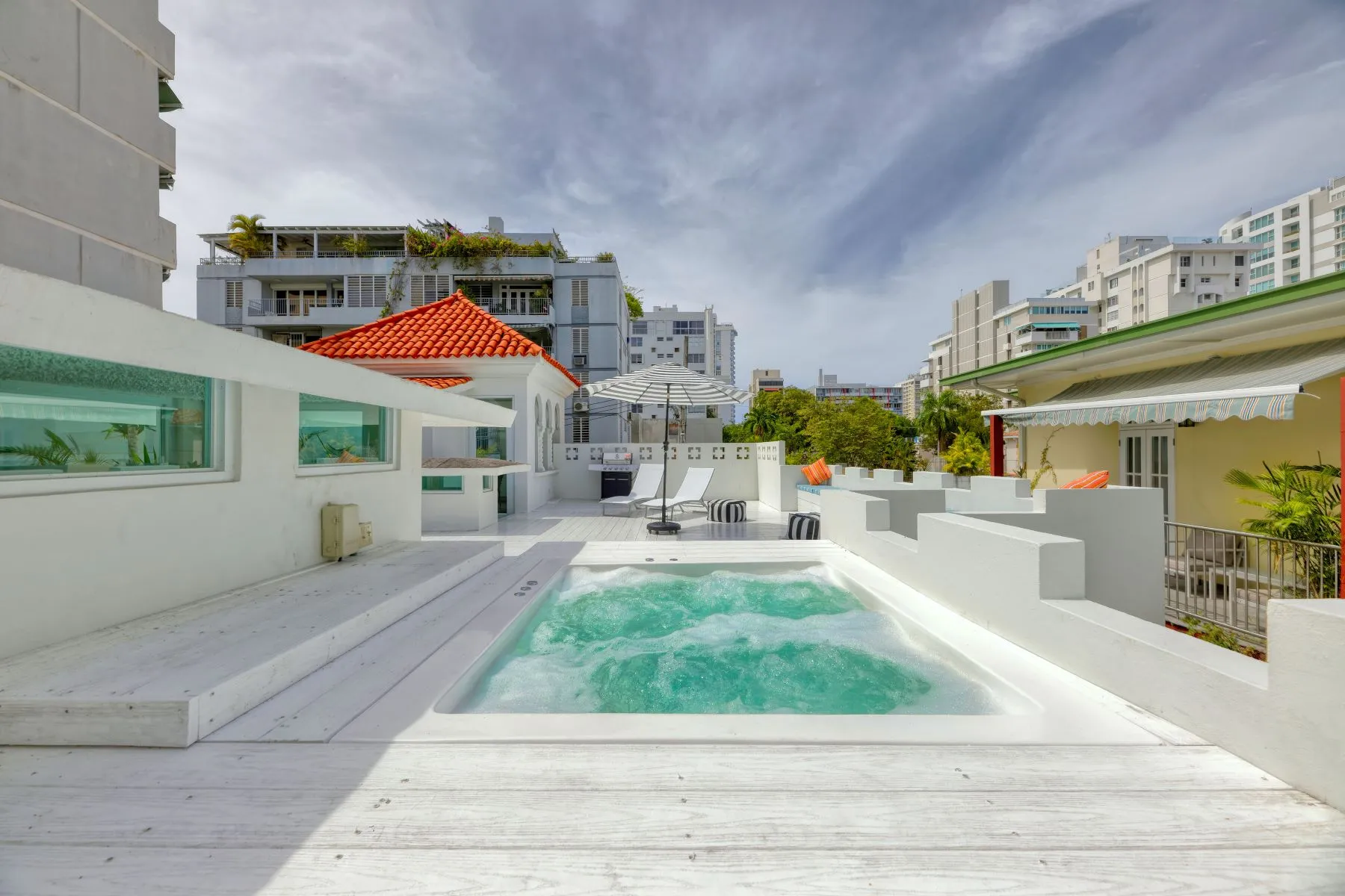 This meticulously renovated home is an entertainer's dream. Sitting on an approx. 450 Sq. M. lot, a rare and coveted find in the city. Once the home of a highly influential poetess and pioneer of women's rights in Puerto Rico, the residence is considered to be a historic gem with unique cultural value. The 1940's Spanish Colonial Revival two story design features over 3,000 Sq. Ft., showcasing four bedrooms and two bathrooms throughout the first story, in addition to exquisite marble flooring, arched doorways, outdoor fountain, lanai and an abundance of natural light. On the second story, a private guest suite with a bed, bath and additional kitchen is available through a separate entrance, as well as a sizable rooftop terrace with a gazebo and Jacuzzi overlooking the coveted city skyline of Condado Beach. A laundry room and 1-car garage plus 3-vehicle carport are provided for added comfort and convenience, along with new appliances, security system, partial generator, storm rated windows and doors. Desirably located in the heart of Condado Beach. Within close proximity to gourmet restaurants, entertainment options, shopping venues and two private schools. CoBe is a highly-esteemed community within the island's thriving capital. Nearby Isla Verde, Old San Juan and the Miramar Arts District.
